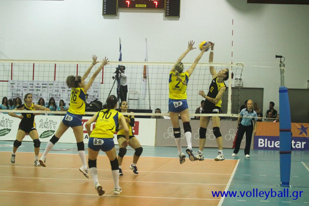 1o σετ: 1-0 άουτ σέρβις Χαραβελούλη, 2-0 Παπαγεωργίου, 3-0 Γκούζου, 4-0 λάθος Φιλαθλητικού, 5-0 Γκούζου, 5-1 άουτ σέρβις Μένετες, 6-1 λάθος σέρβις Μπαλδώκα, 7-1 Κις, 7-2 άουτ σέρβις Γκούζου, 8-2 Μποροβίντσεκ, 9-2 Κις, 10-2 άουτ Αναγνωστοπούλου 10-3 Αργυροπούλου, 11-3 λάθος σέρβις Φιλαθλητικός, 12-3 λάθος φιλαθλητικός, 12-4 λάθος σέρβις Παπαγεωργίου, 12-5 άσος Αργυροπούλου, 13-5 Μποροβίντσεκ, 14-5, 15-5, 16-5 άσος Μποροβίντσεκ, 16-6, 18-7, 19-7, 19-8 Νικούλη, 20-8 λάθος σέρβις Αργυροπούλου, 20-9 άουτ σέρβις Γκούζου, 21-12, 22-12 Παπαγεωργίου, 22-13 Αργυροπούλου, 22-14 παράβαση τσοχατζή, 23-14, 24-14 μπλοκ Μέντες σε Νικούλη, 25-14